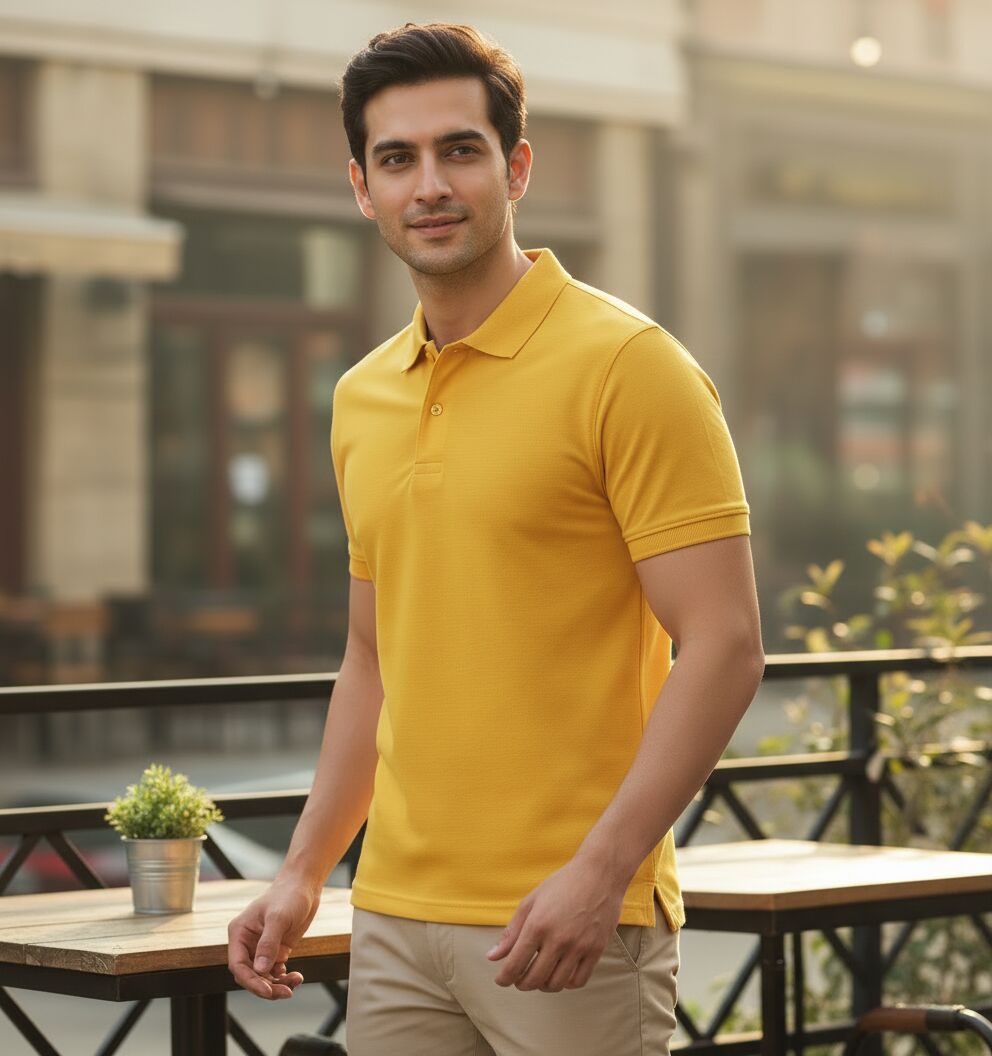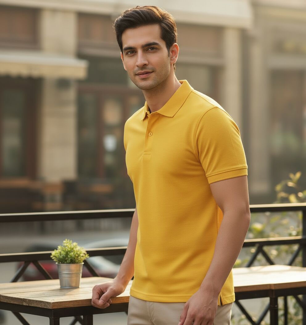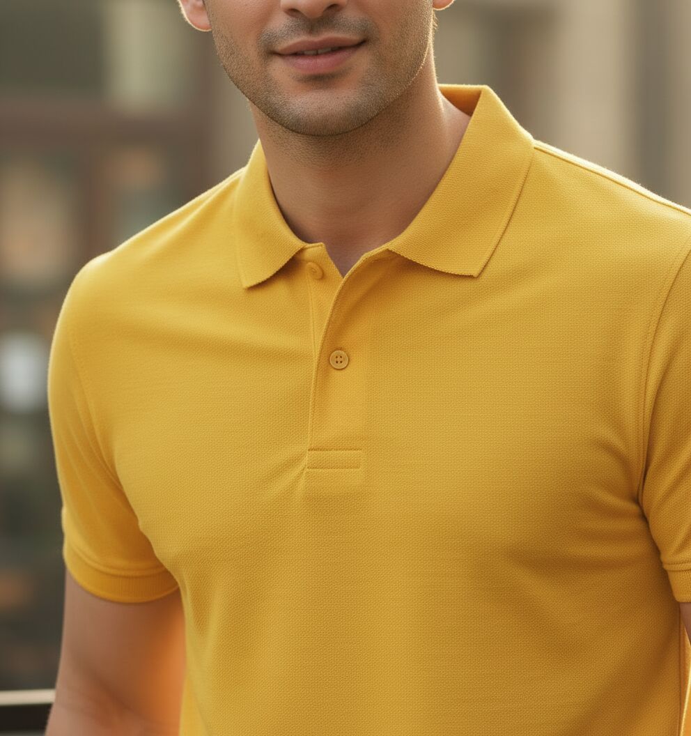 We offer a Men's Yellow Cotton Polo T-Shirt crafted from premium cotton for ultimate comfort. This classic piece features a vibrant yellow color, perfect for adding a pop of color to your wardrobe. With a regular fit, half sleeves, and collar neck, this plain patterned t-shirt is ideal for casual wear. Easy to care for with machine wash instructions, this t-shirt is a versatile addition to your collection. Made in India, this high-quality t-shirt is suitable for various occasions. Choose size S for the perfect fit.