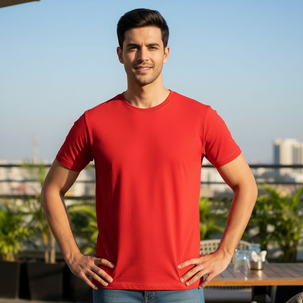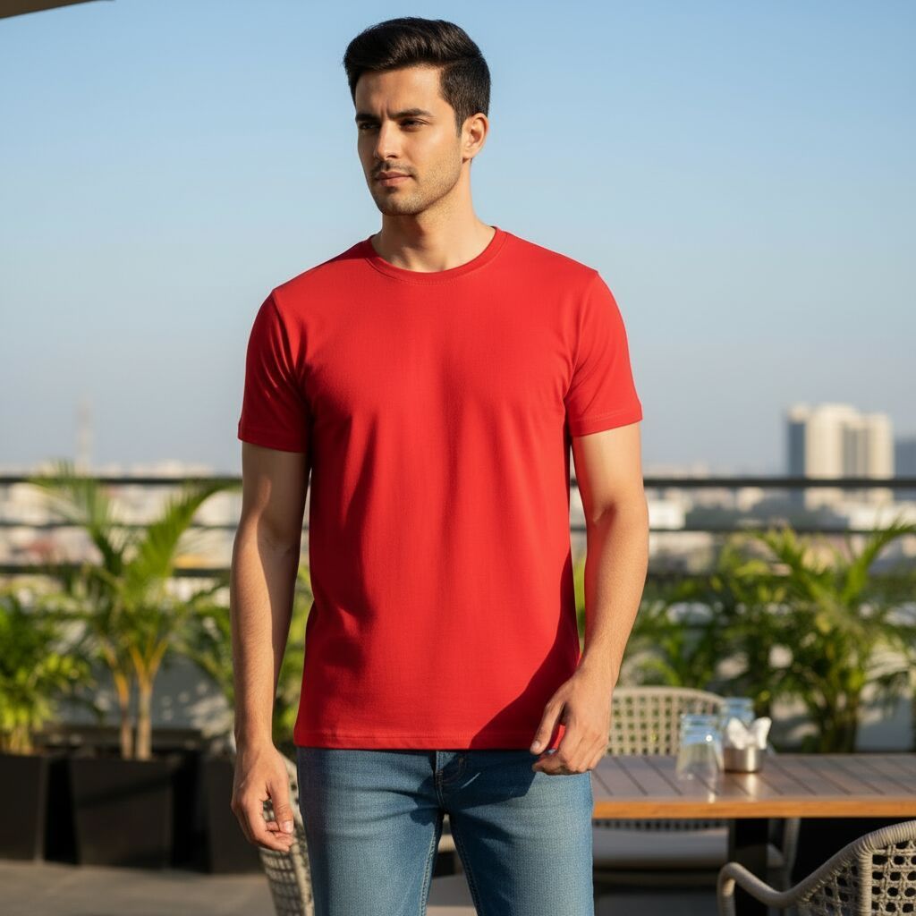 Leading Manufacturers, Exporters, Wholesaler and Trader of Mens Red Cotton Round Neck T-Shirt and Mens Yellow Cotton Round Neck T-Shirt from Meerut.